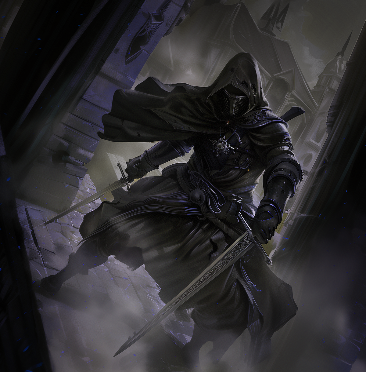 Considered highly secretive even by Masqued Guilda standards, the black and purple robed assassinex of the Orleans a Braganza Guilda are feared for their lightning reflexes, vibro-weapons, misdirection, and devious ploys.